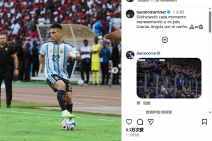 劳塔罗社媒晒图:代表祖国出战的每一刻都让我无比享受